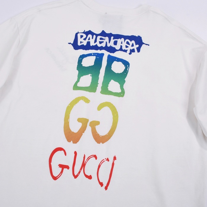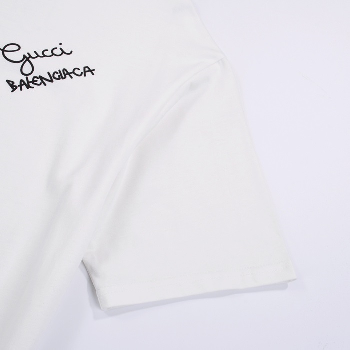 バレンシアガメンズクルーネックホワイト半袖Tシャツa180