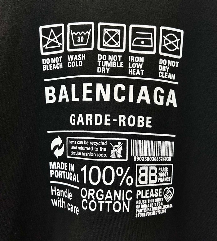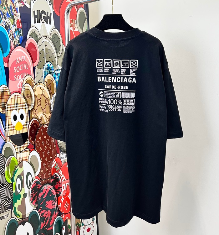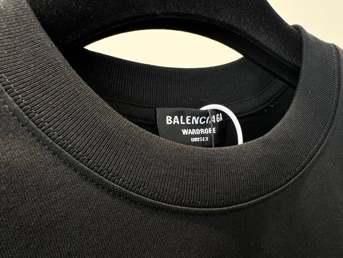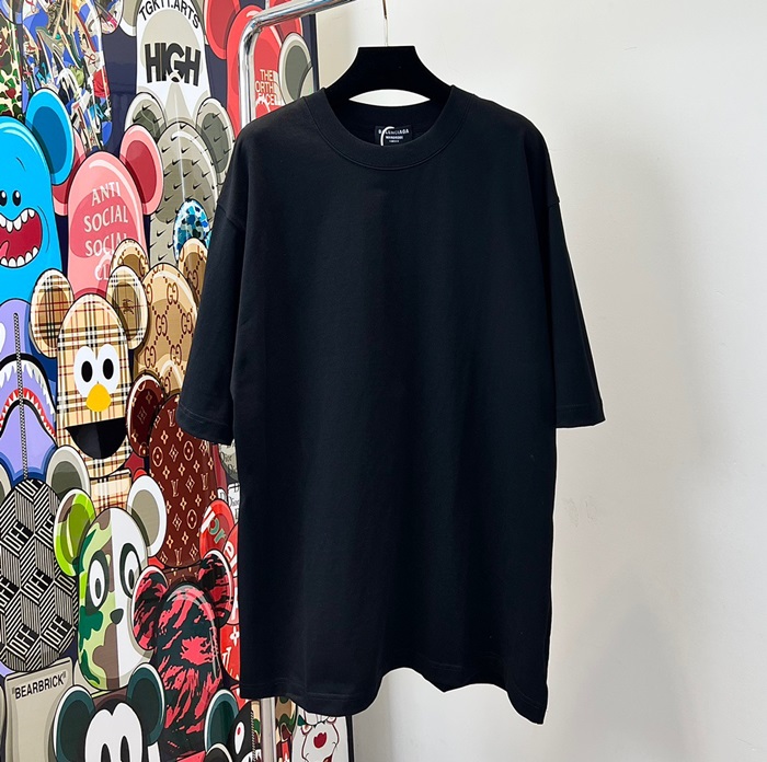 バレンシアガメンズクルーネックブラック半袖Tシャツa186
