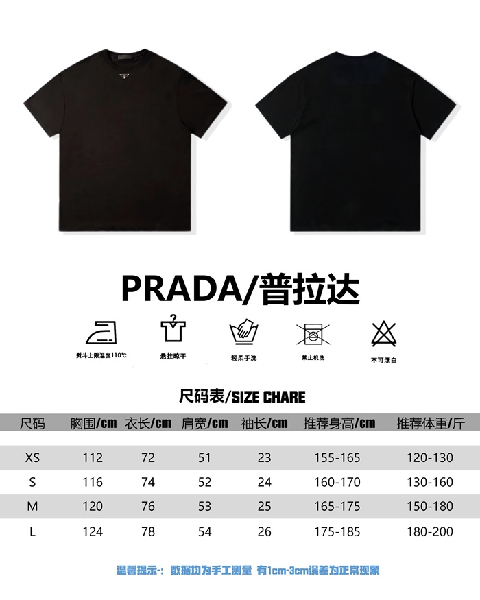 プラダメンズブラッククルーネック半袖Tシャツr317
