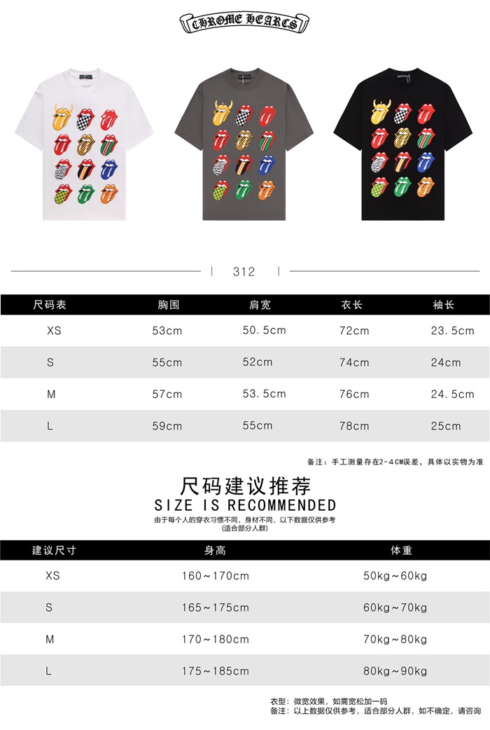 クロムハーツメンズホワイトクルーネック半袖Tシャツh86