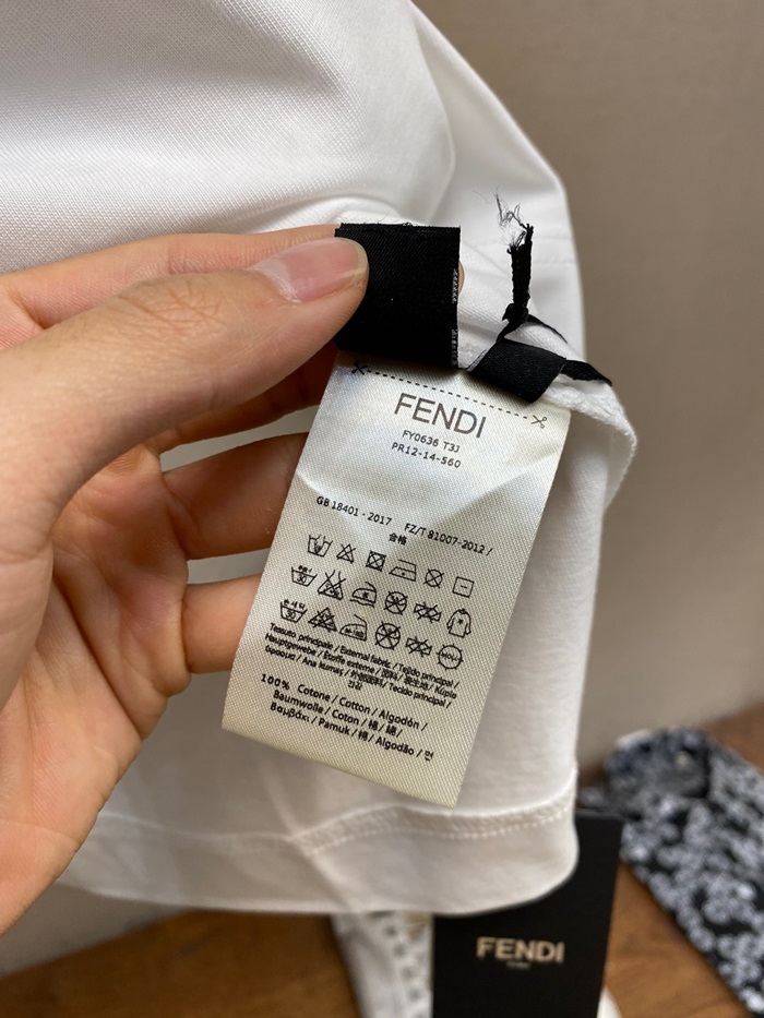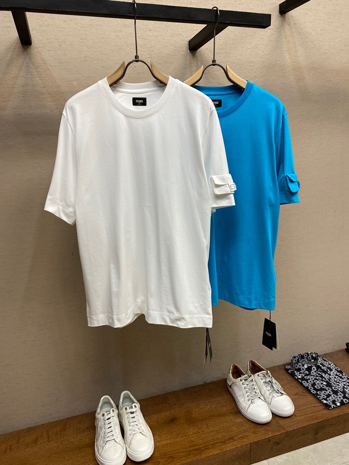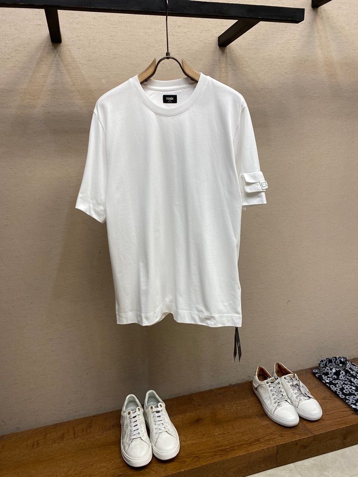 ェンディメンズホワイトクルーネック半袖Tシャツe71