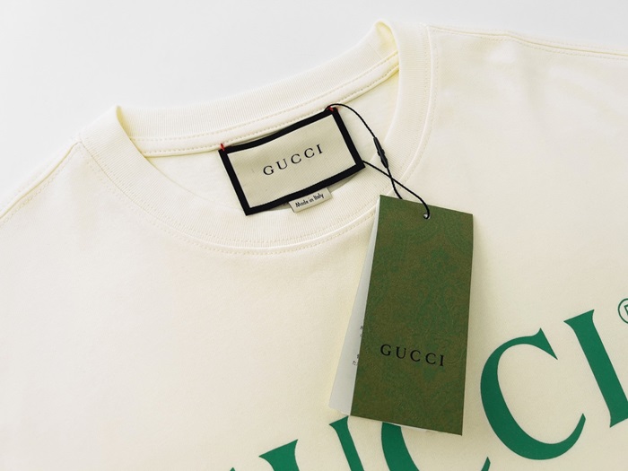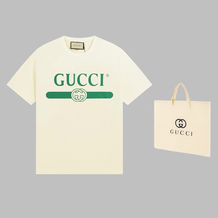 グッチユニセックスホワイトクルーネック半袖Tシャツu289
