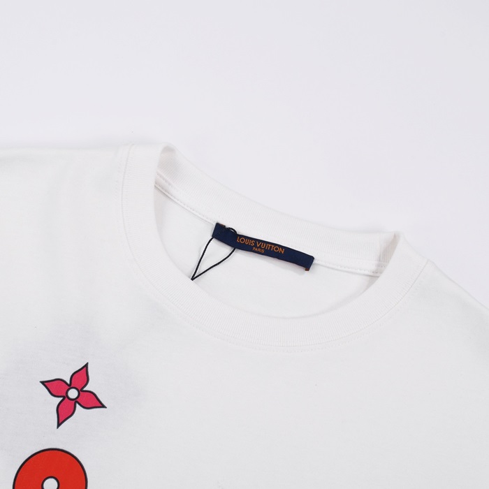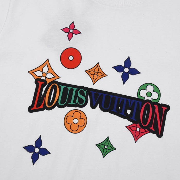 ルイヴィトンメンズホワイトクルーネック半袖Tシャツv575