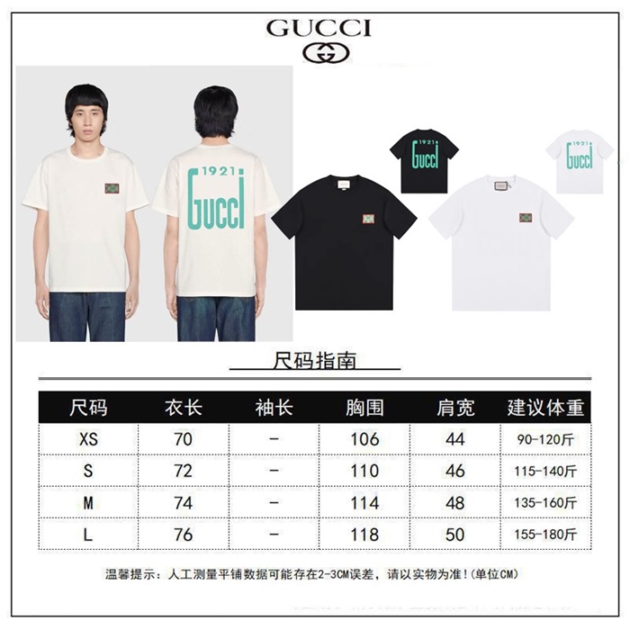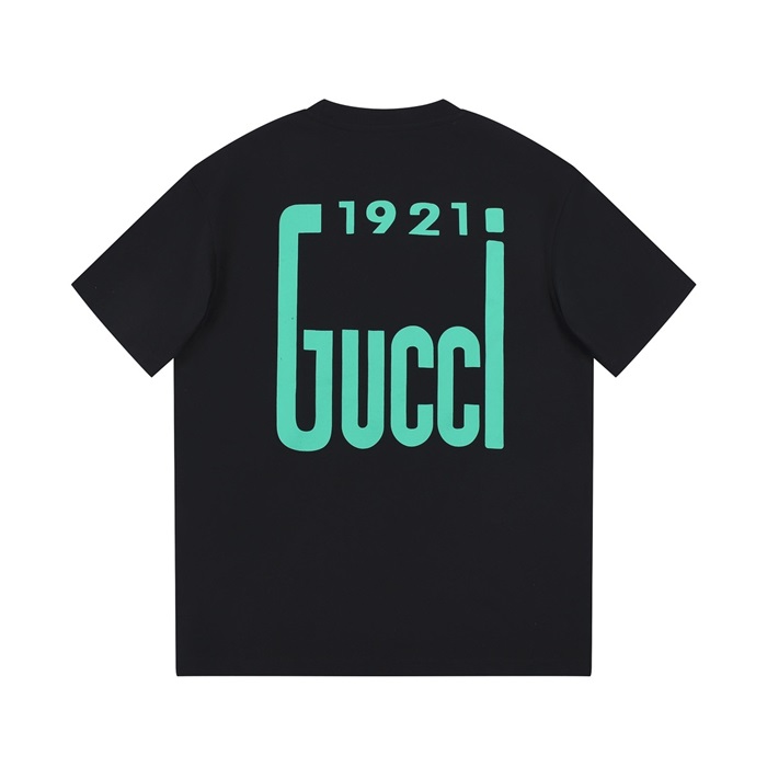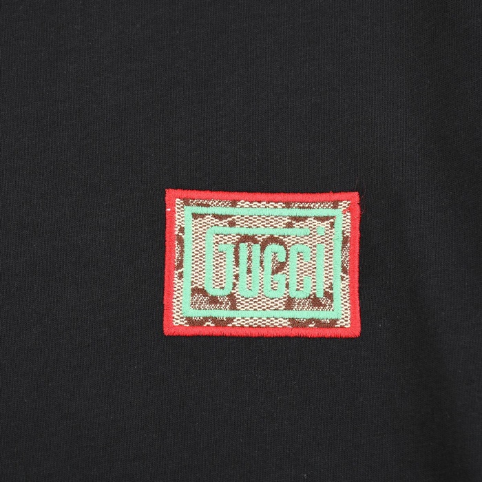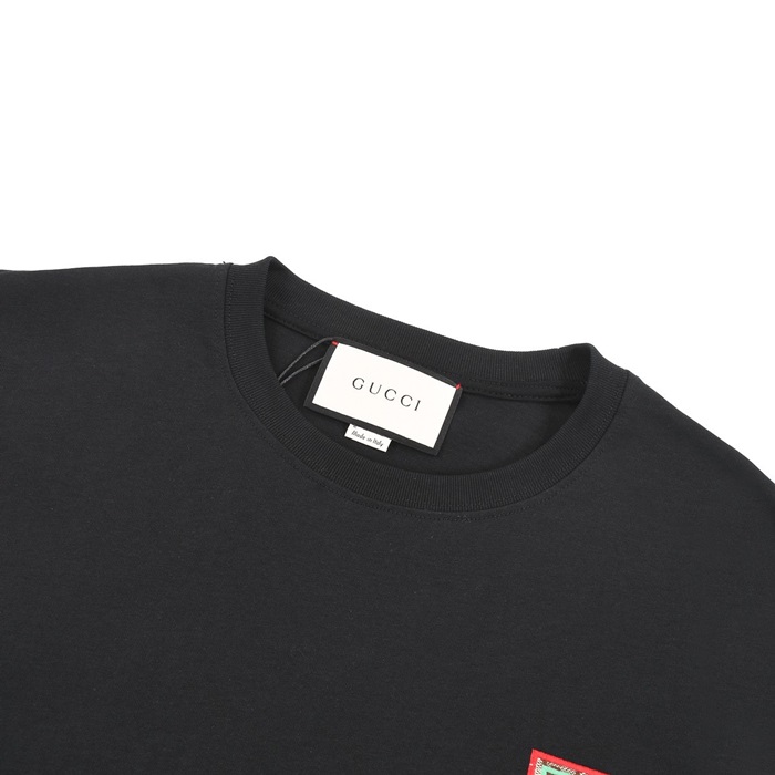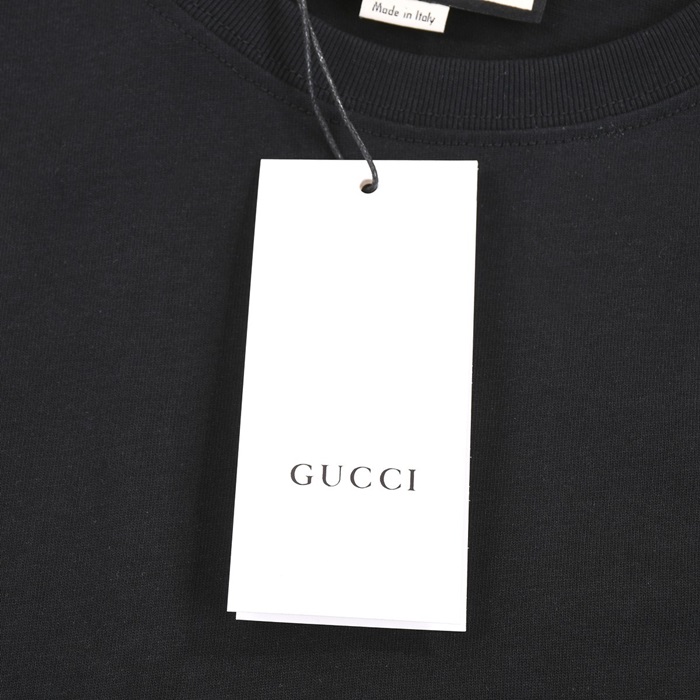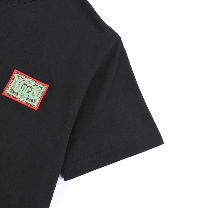 グッチユニセックスブラッククルーネック半袖Tシャツu296