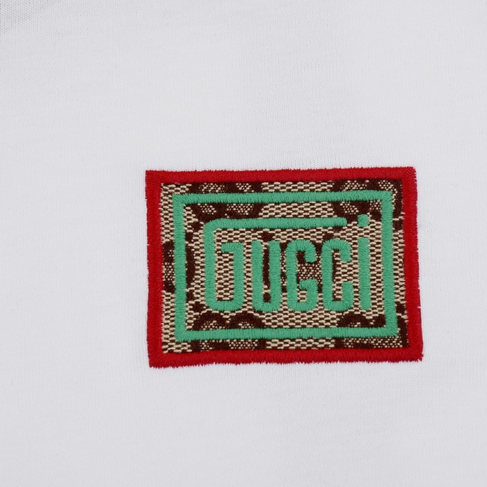 グッチユニセックスホワイトクルーネック半袖Tシャツu297