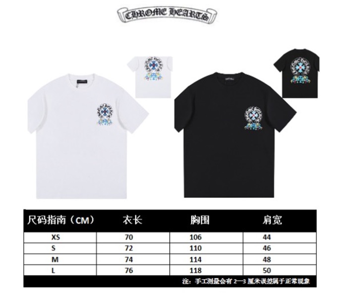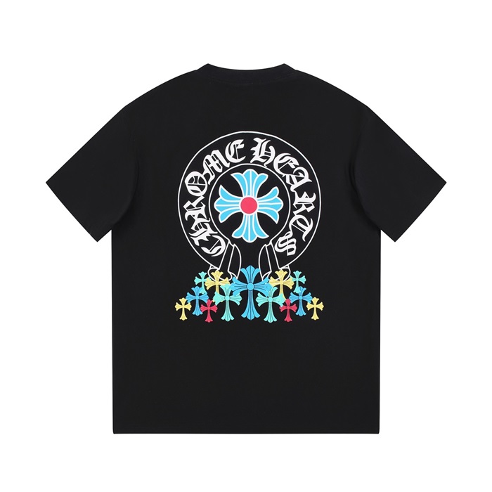 クロムハーツメンズブラッククルーネック半袖Tシャツh87