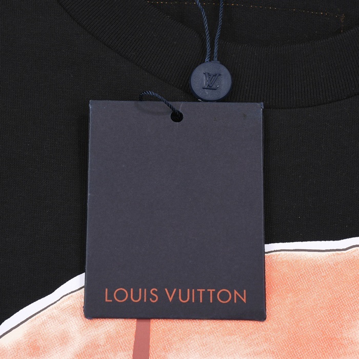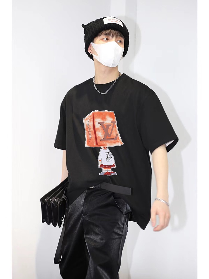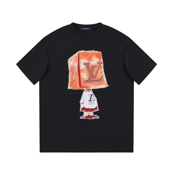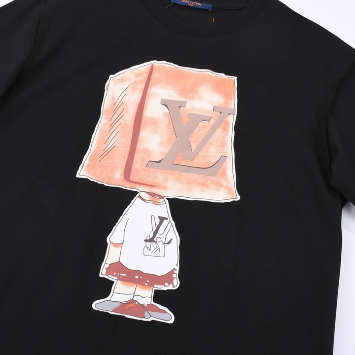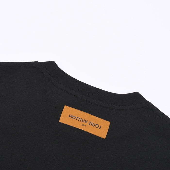 ルイヴィトンメンズブラッククルーネック半袖Tシャツv579