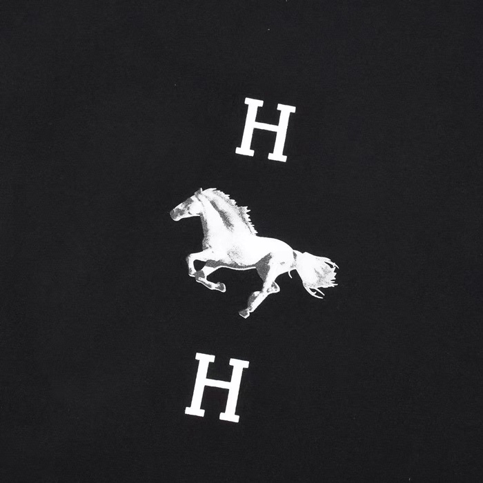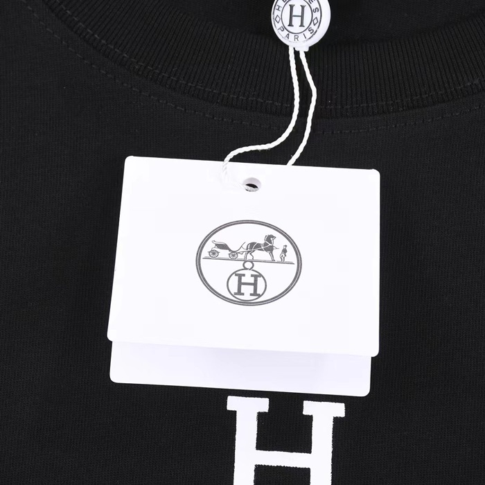 エルメスメンズブラッククルーネック半袖Tシャツe65