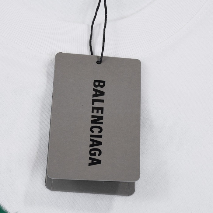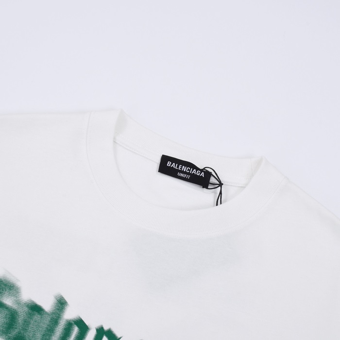 バレンシアガメンズクルーネックホワイト半袖Tシャツa196