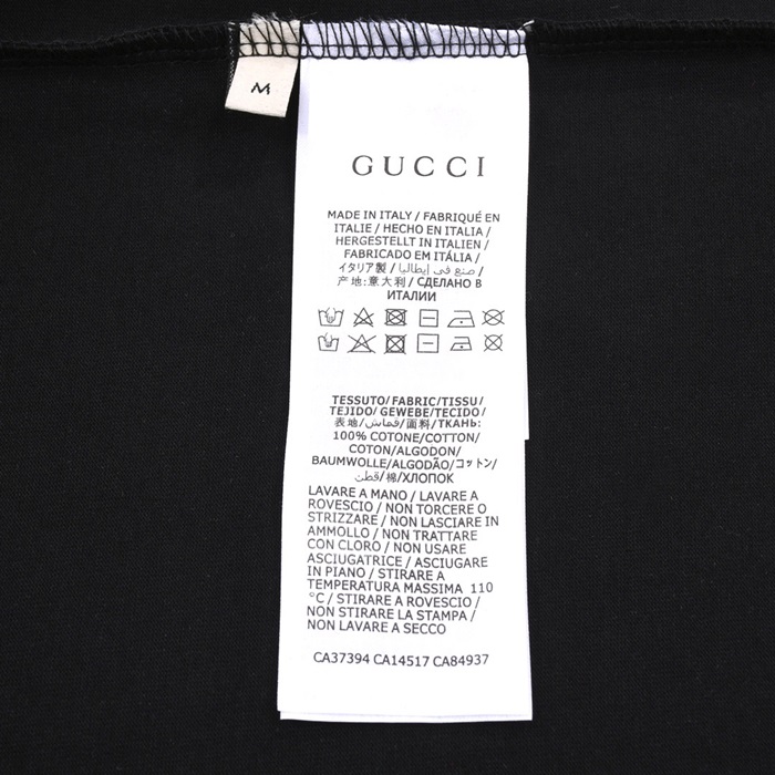 グッチユニセックスブラッククルーネック半袖Tシャツu306