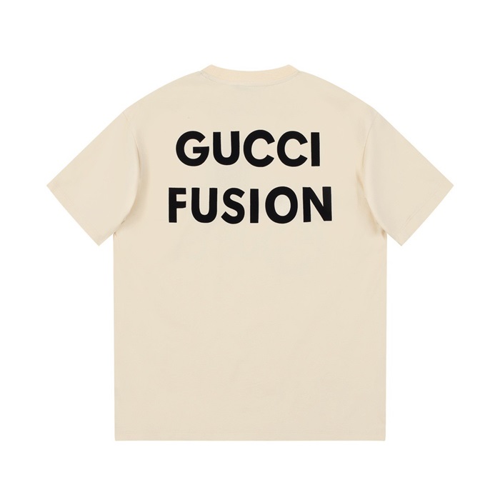 グッチユニセックスアイボリークルーネック半袖Tシャツu307