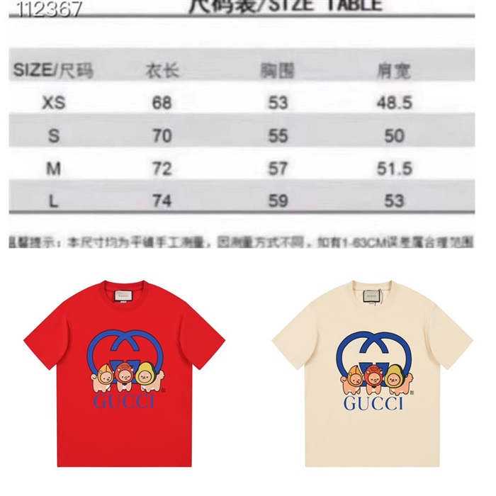 グッチユニセックスアイボリークルーネック半袖Tシャツu310