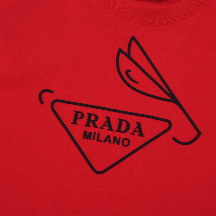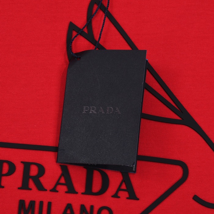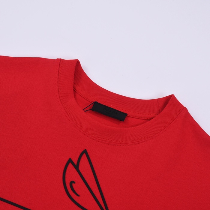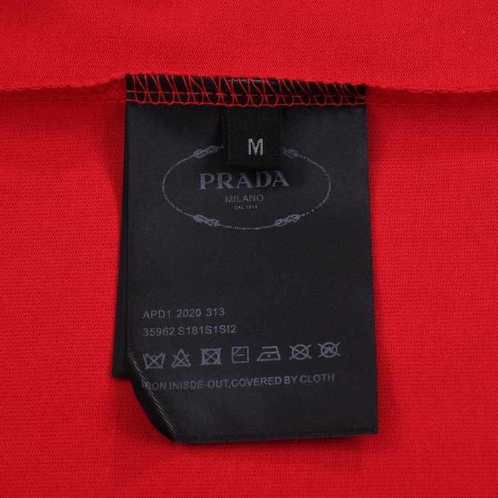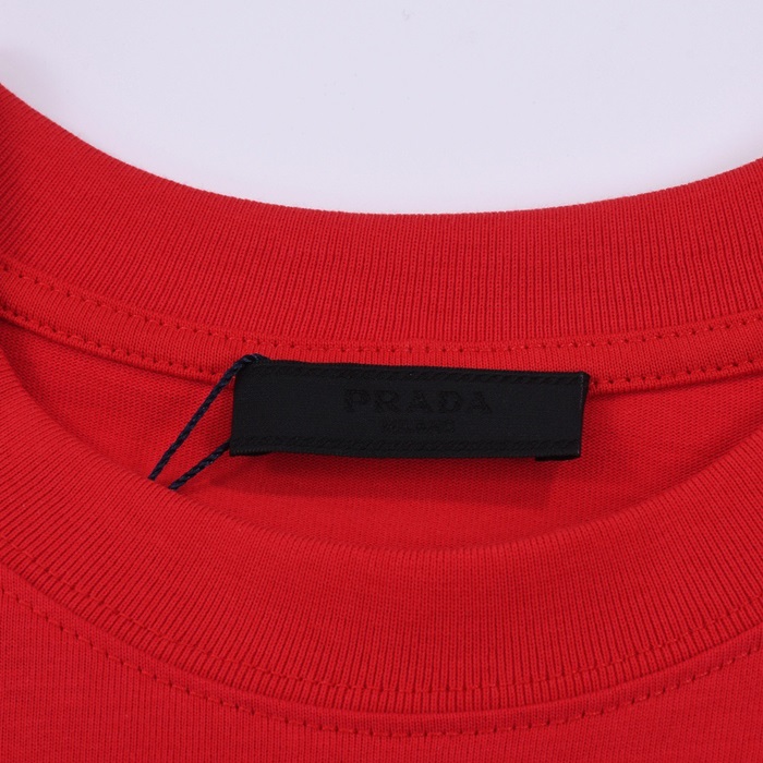 プラダメンズレッドクルーネック半袖Tシャツr331