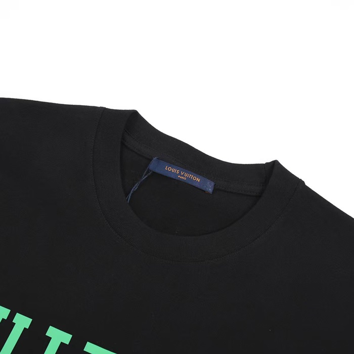 ルイヴィトンメンズブラッククルーネック半袖Tシャツv596