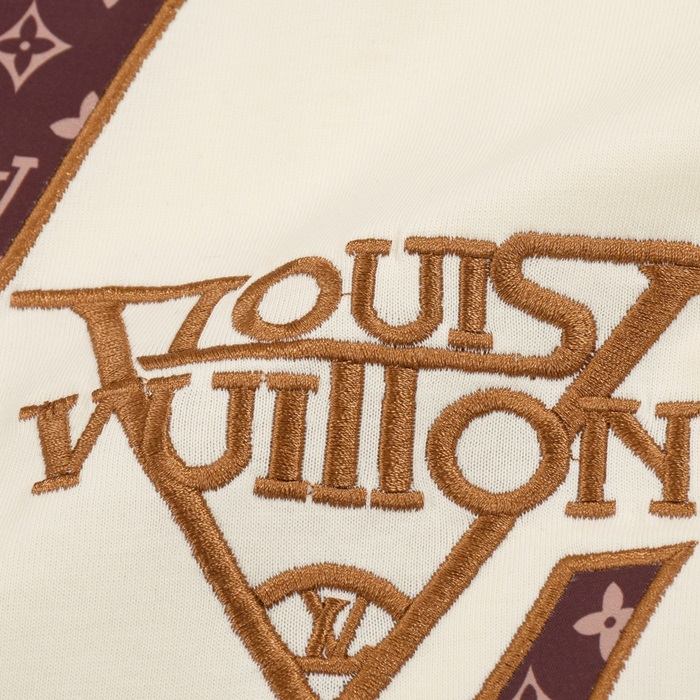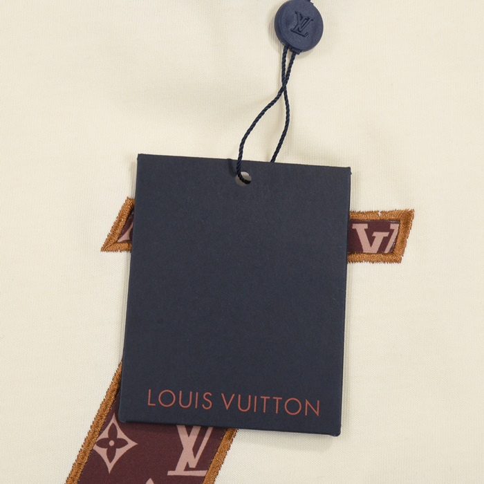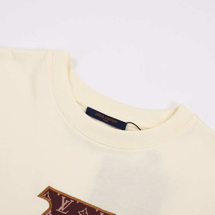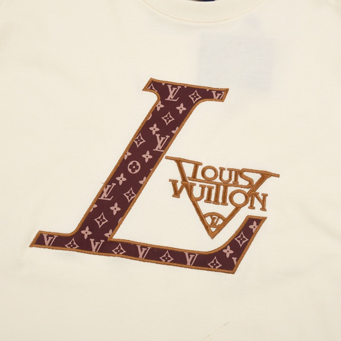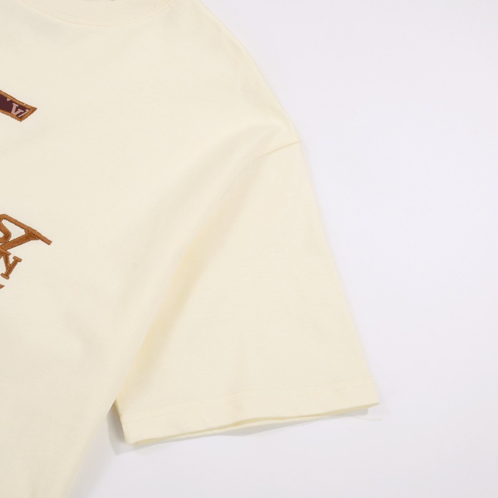 ルイヴィトンメンズアイボリークルーネック半袖Tシャツv597