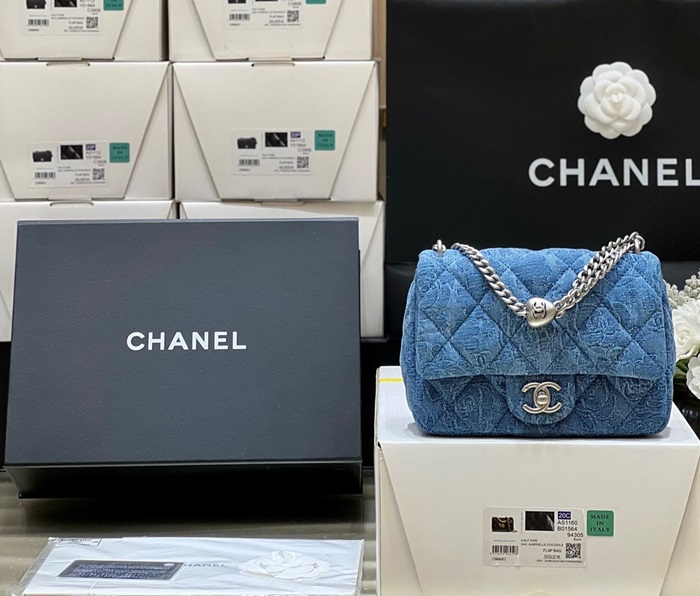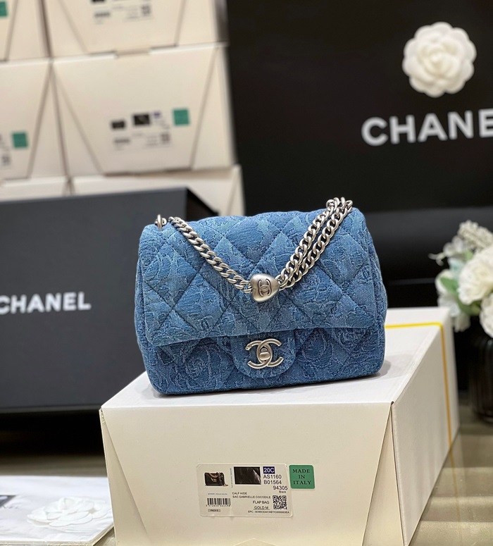 シャネルレディースブルーチェーンバッグh72