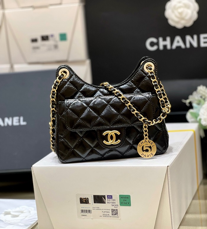 シャネルレディースブラックハボバッグh75