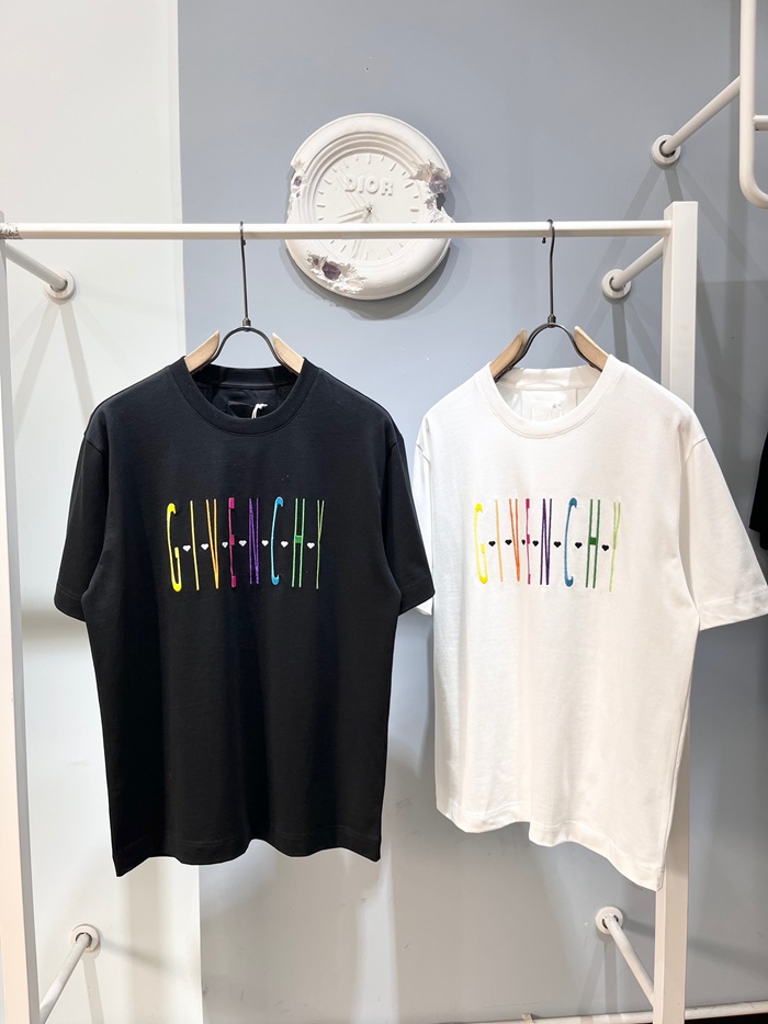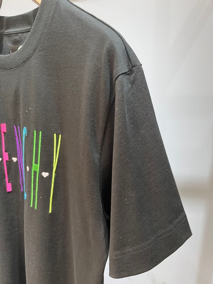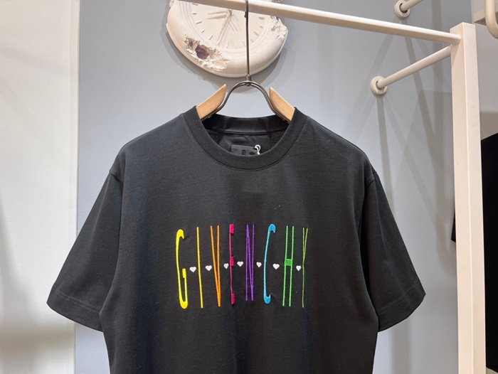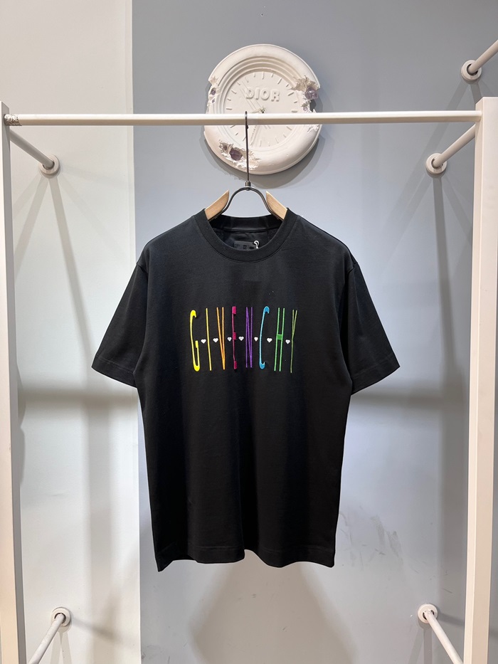 ジバンシィユニセックスクルーネックブラック半袖Tシャツi193