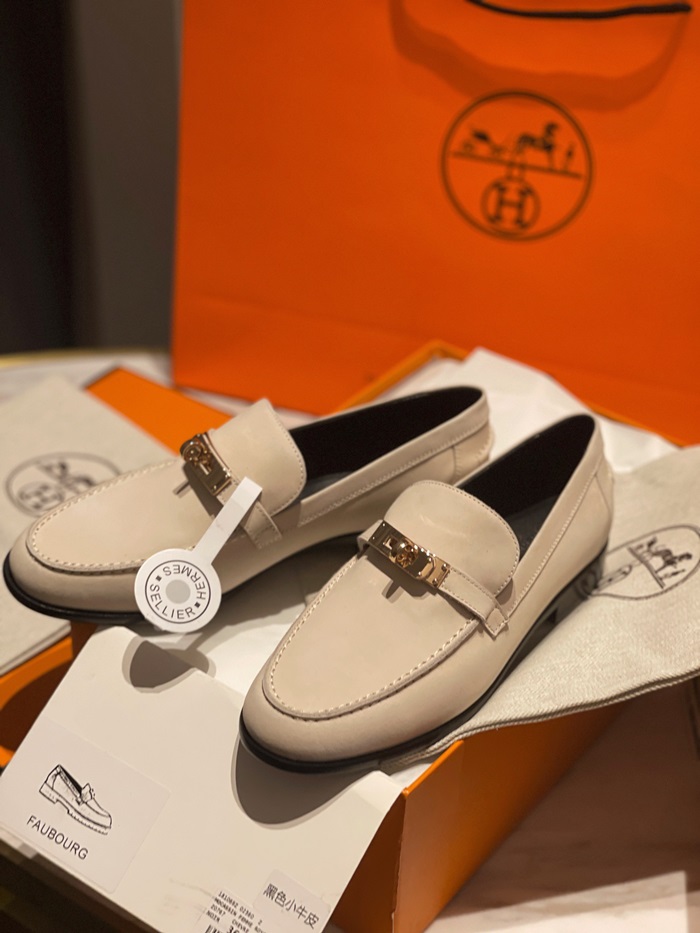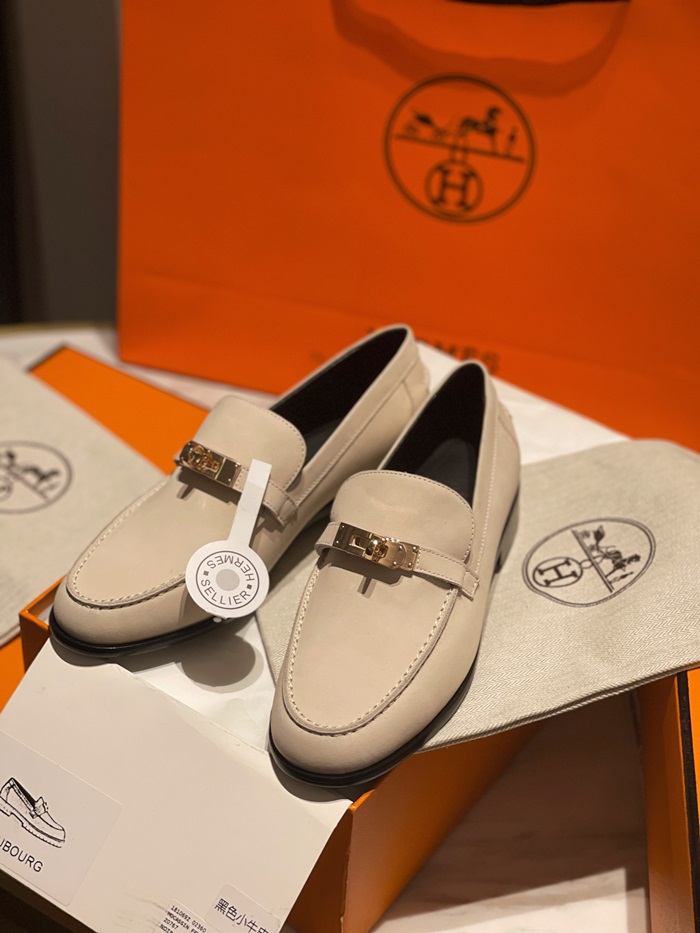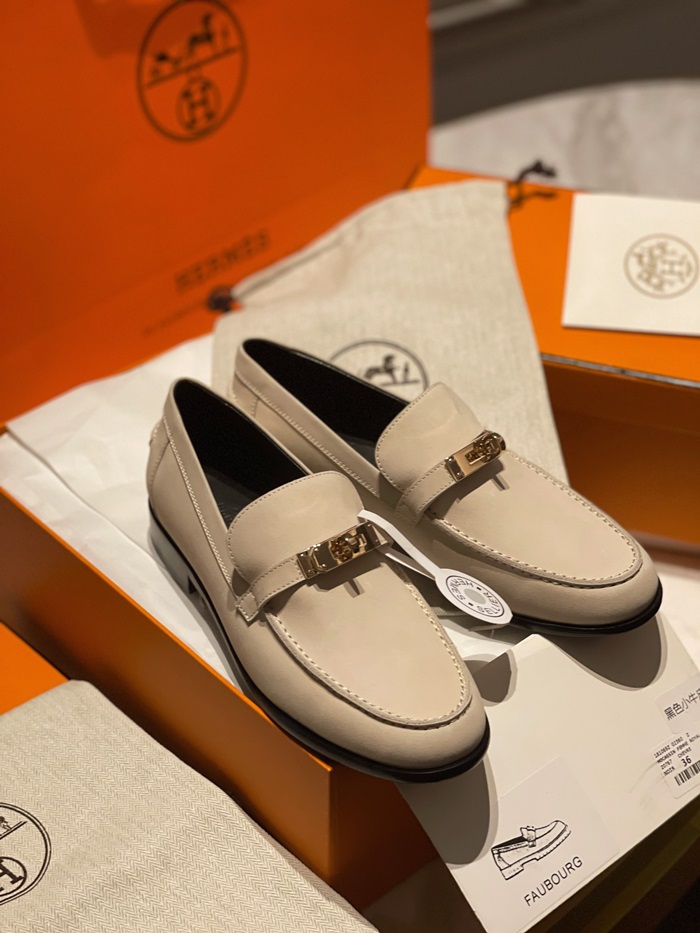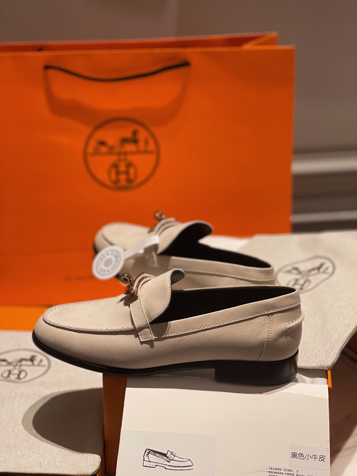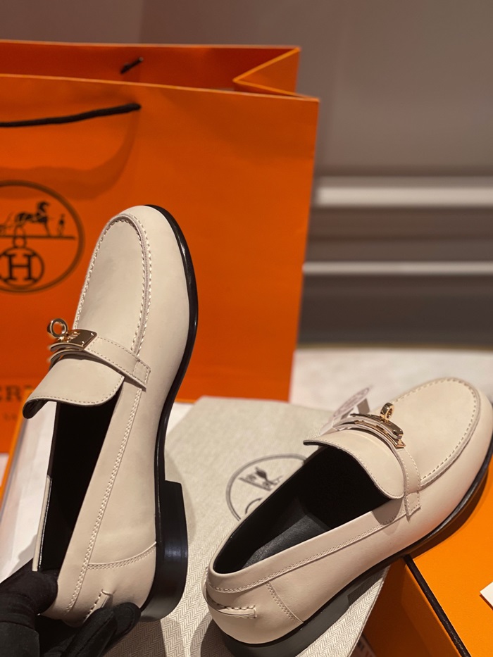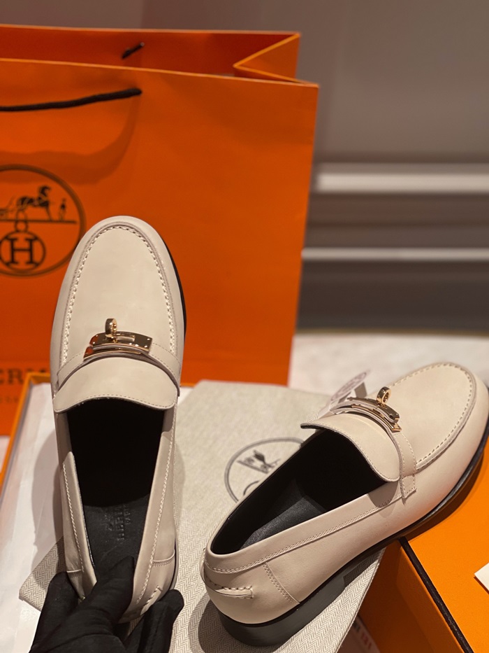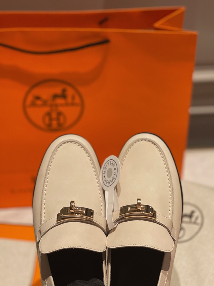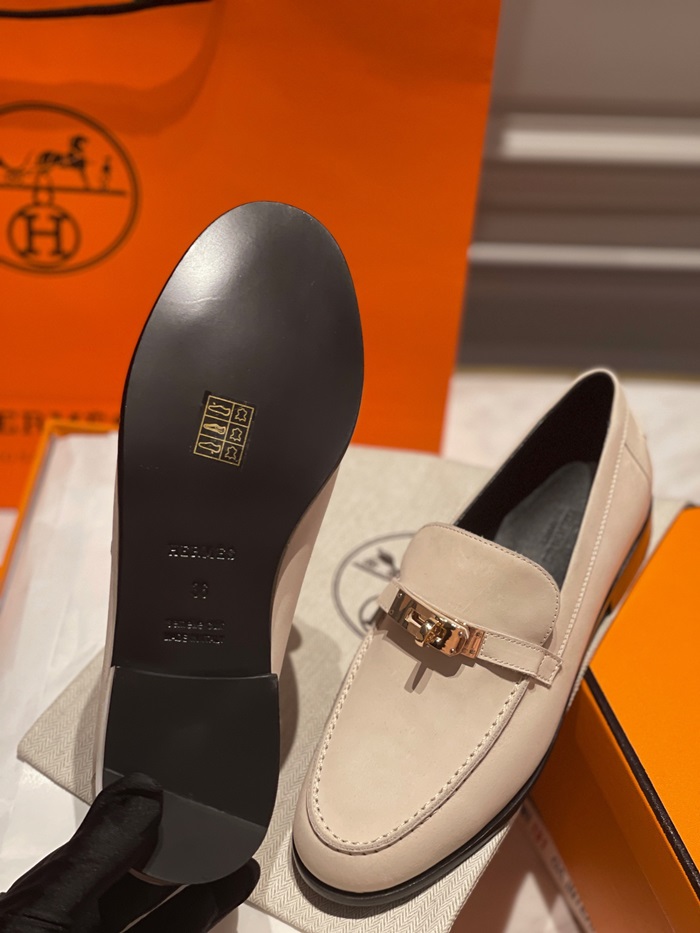 エルメスレディースシグネチャーベージュローファーe78