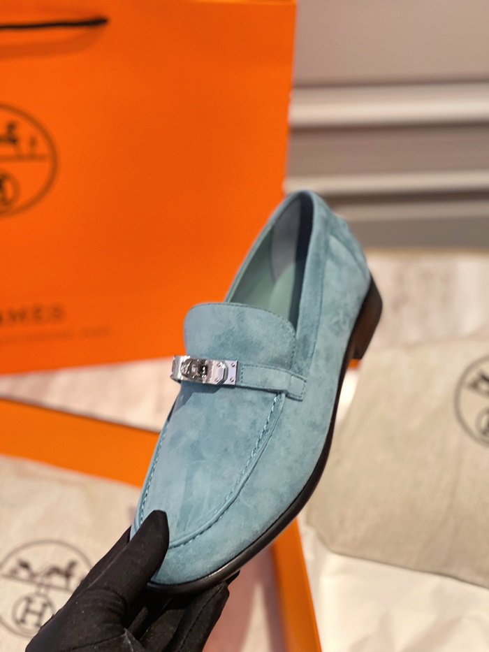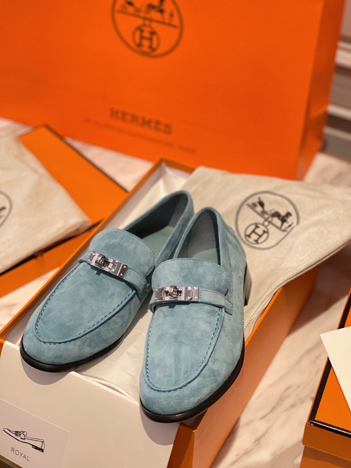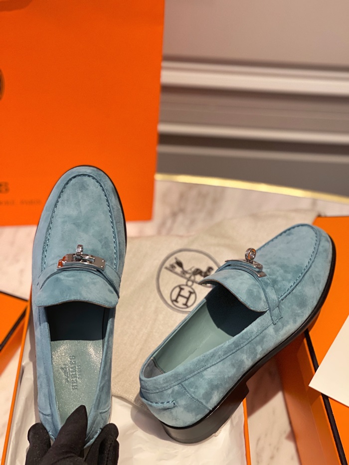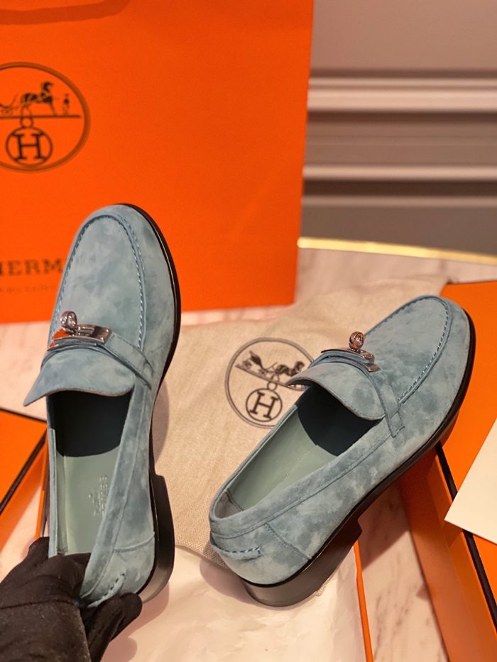 エルメスレディースシグネチャーブルーローファーe80