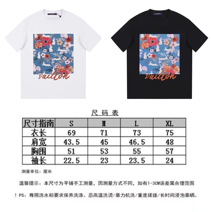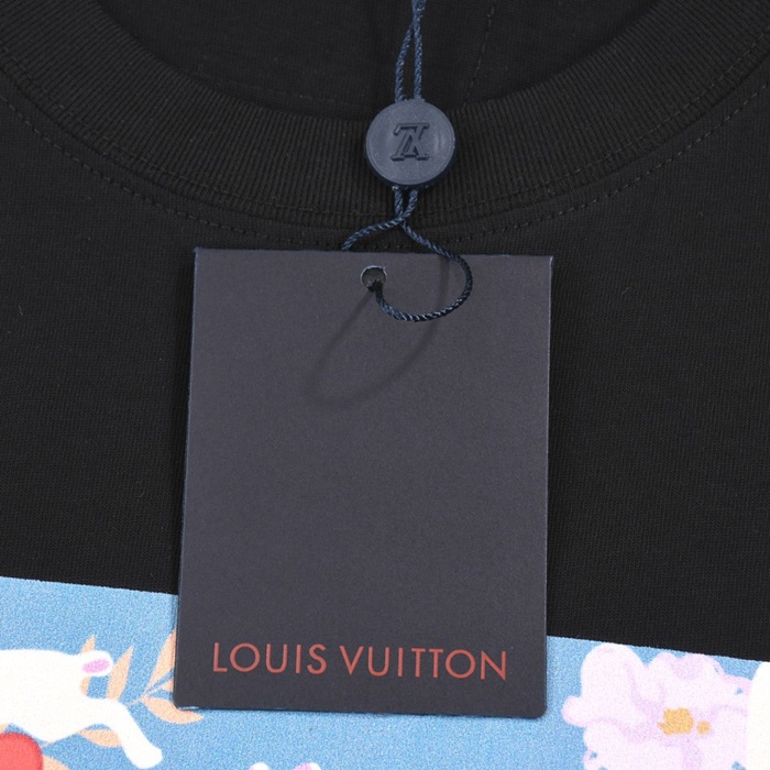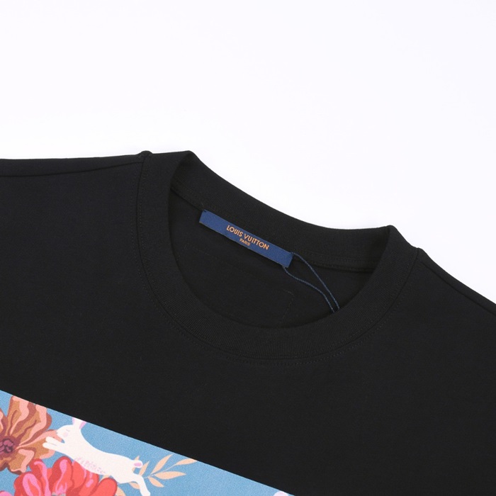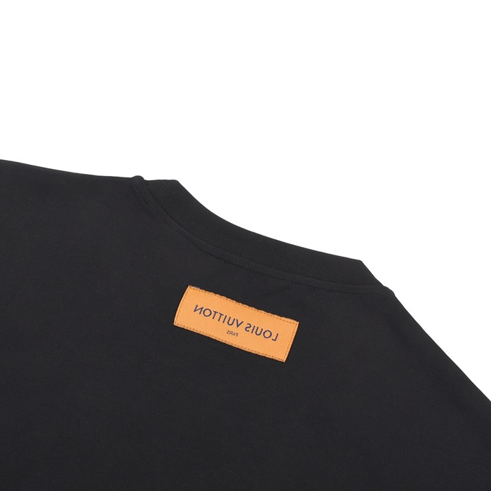 ルイヴィトンメンズブラッククルーネック半袖Tシャツv632