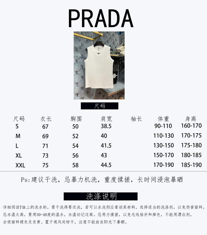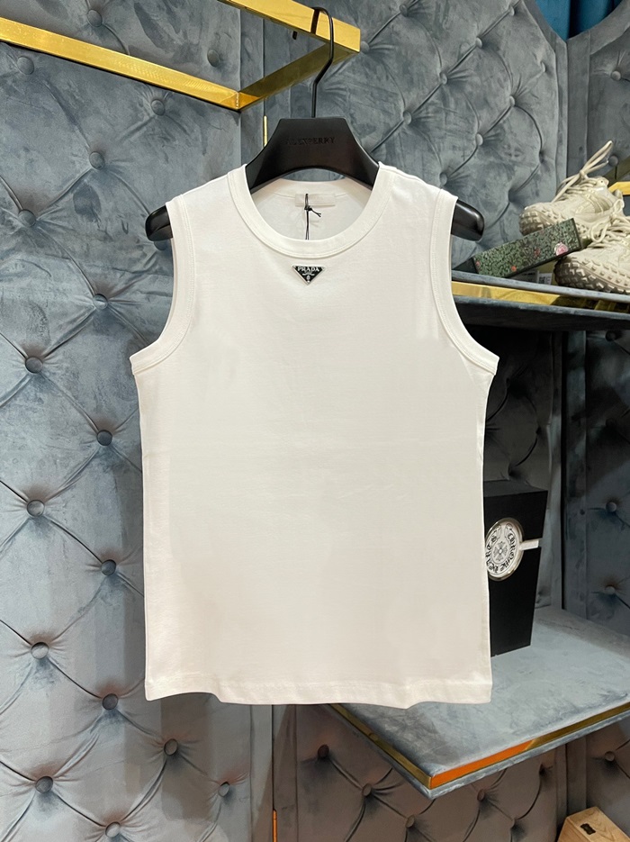 プラダメンズホワイトクルーネックタンクトップr337