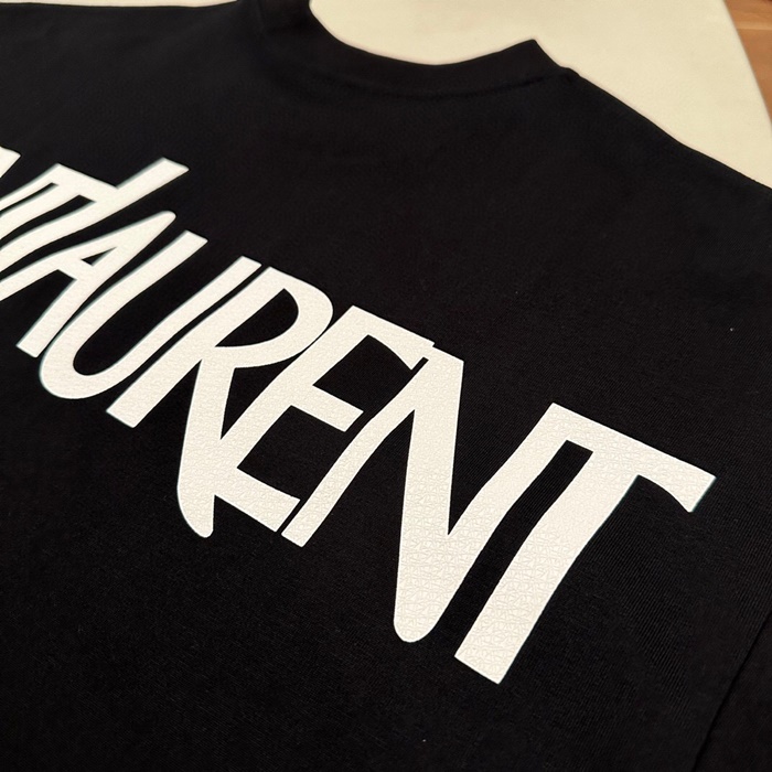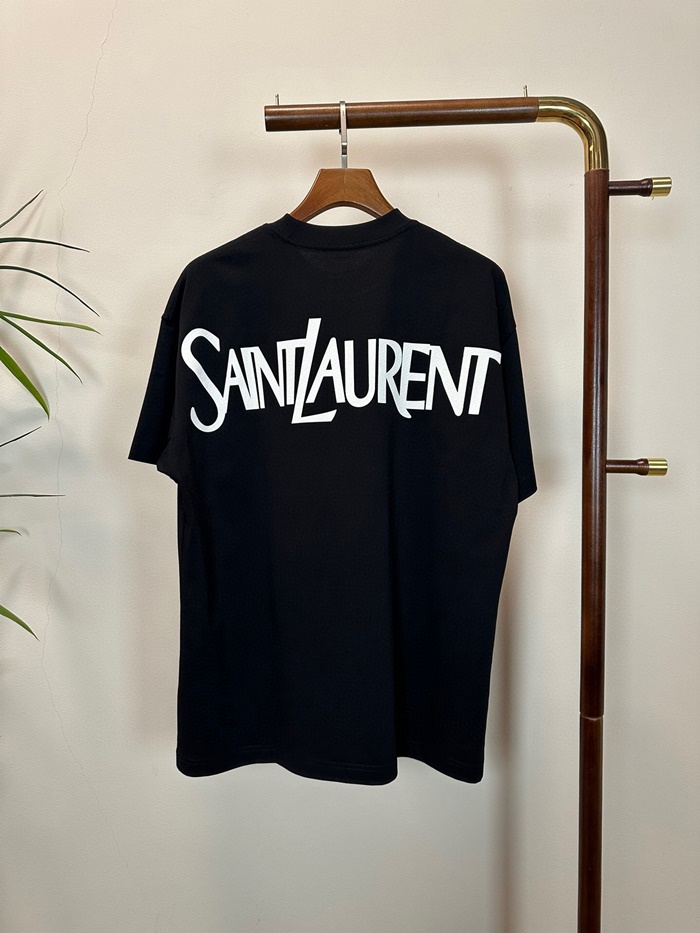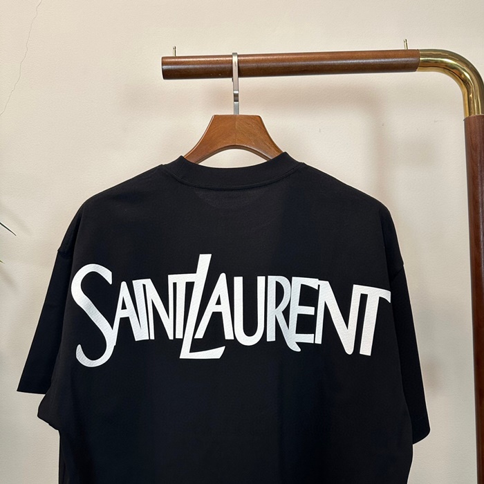 サンローランメンズブラッククルーネック半袖Tシャツl341