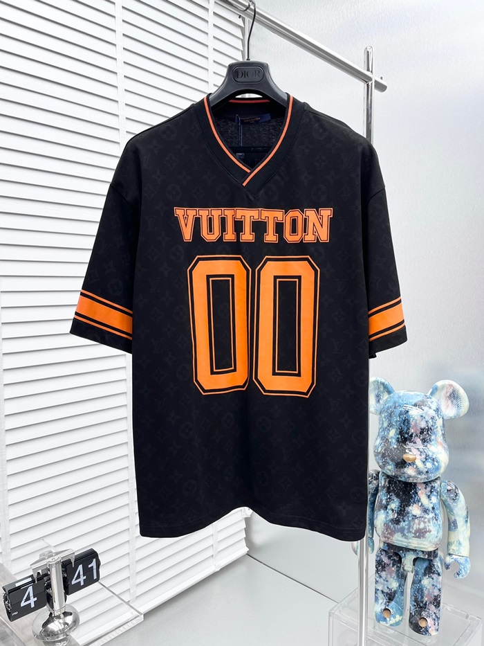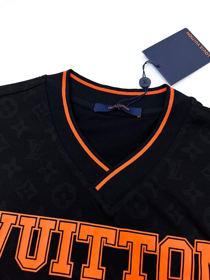 ルイヴィトンメンズブラックネック半袖Tシャツv640