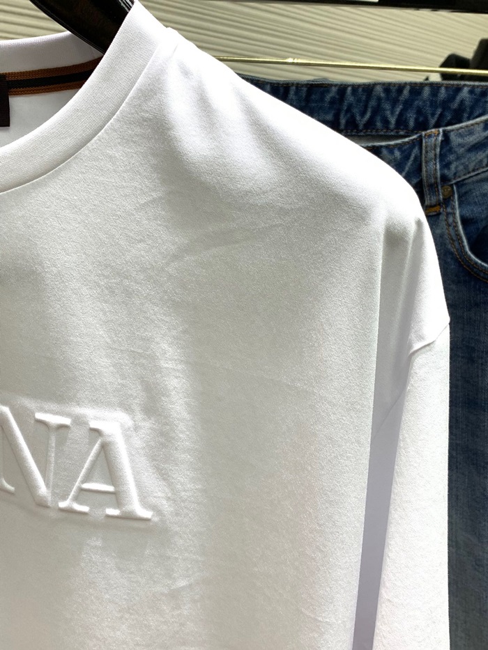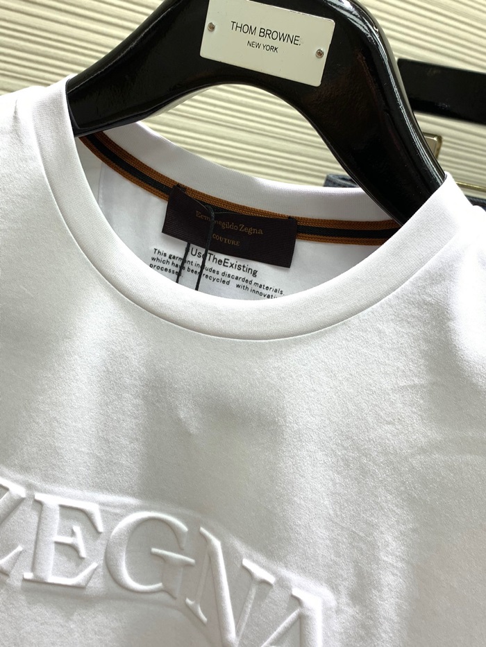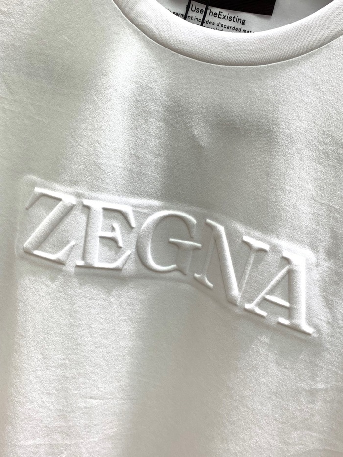 エルメネジルドゼニアメンズホワイトクルーネック半袖Tシャツe67