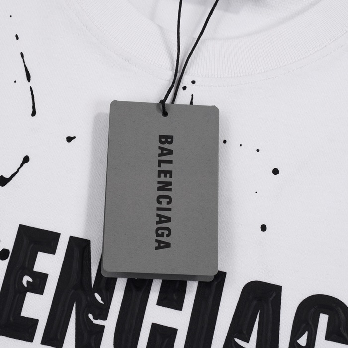 バレンシアガメンズクルーネックホワイト半袖Tシャツa217