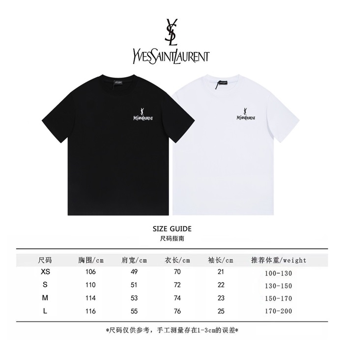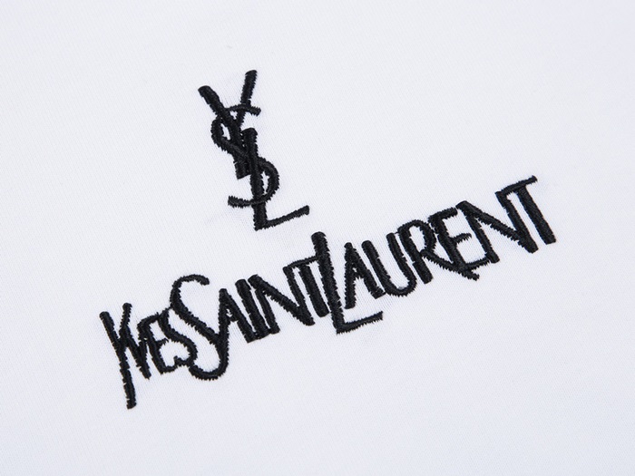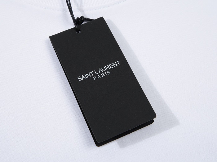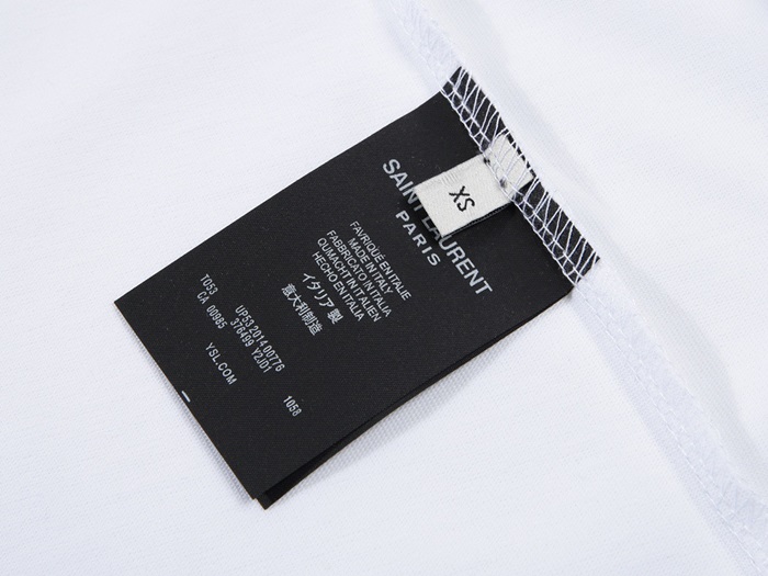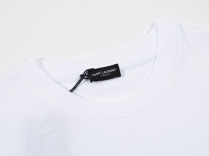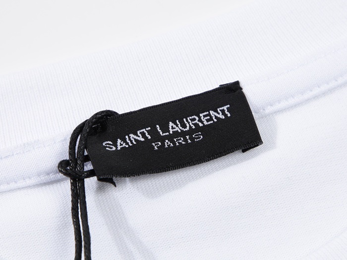 サンローランメンズホワイトクルーネック半袖Tシャツl342