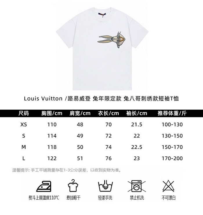 ルイヴィトンメンズホワイトクルーネック半袖Tシャツv646