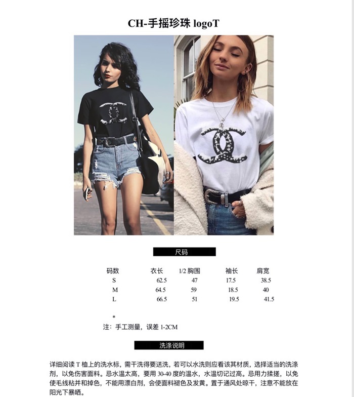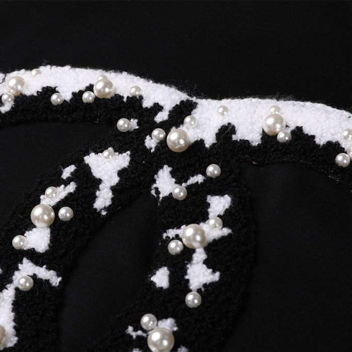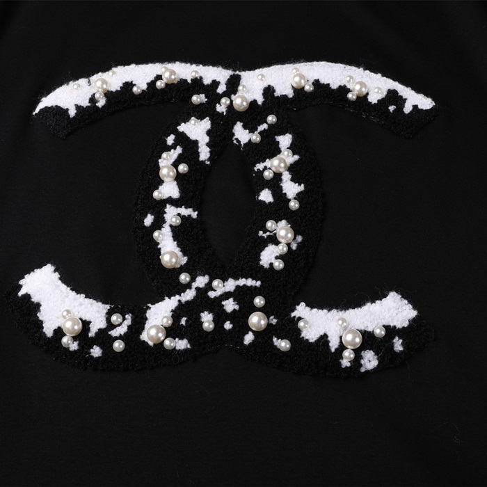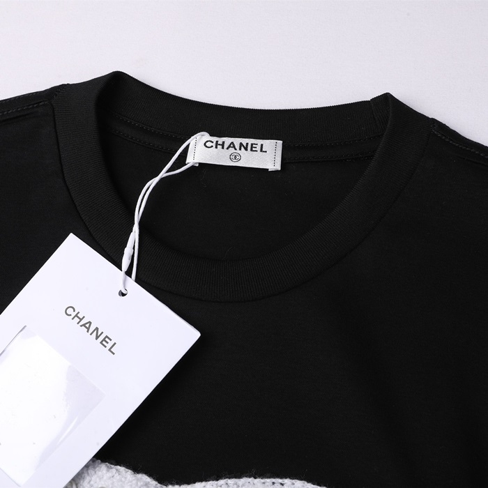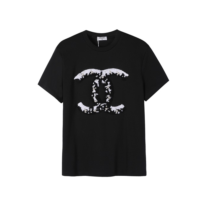 シャネルレディースクルーネックブラック半袖Tシャツh79