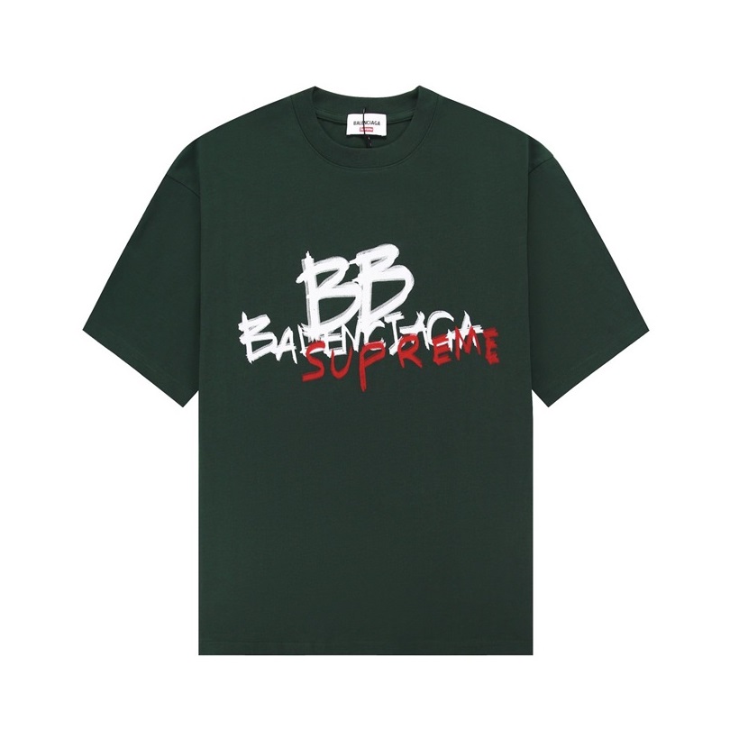バレンシアガメンズクルーネックグリーン半袖Tシャツa226