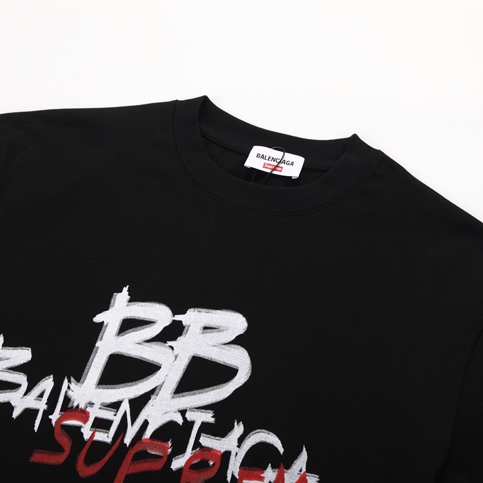 バレンシアガメンズクルーネックブラック半袖Tシャツa229