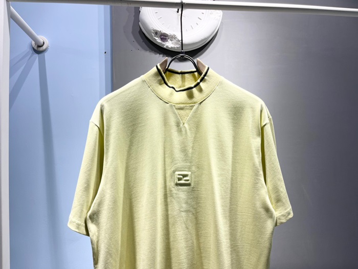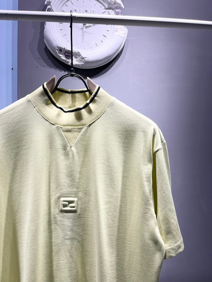 ェンディメンズイエロークルーネック半袖Tシャツe80