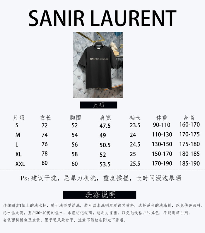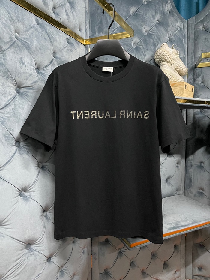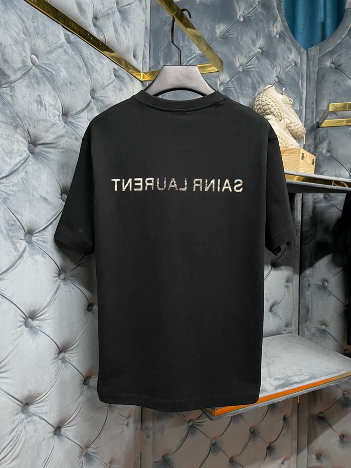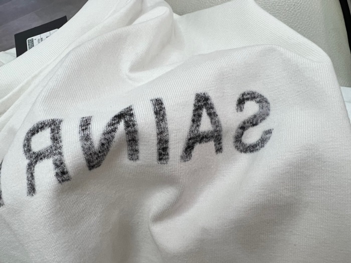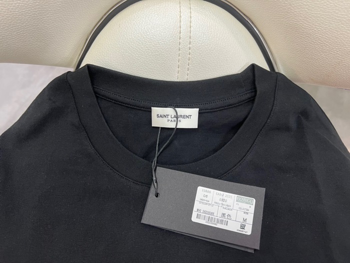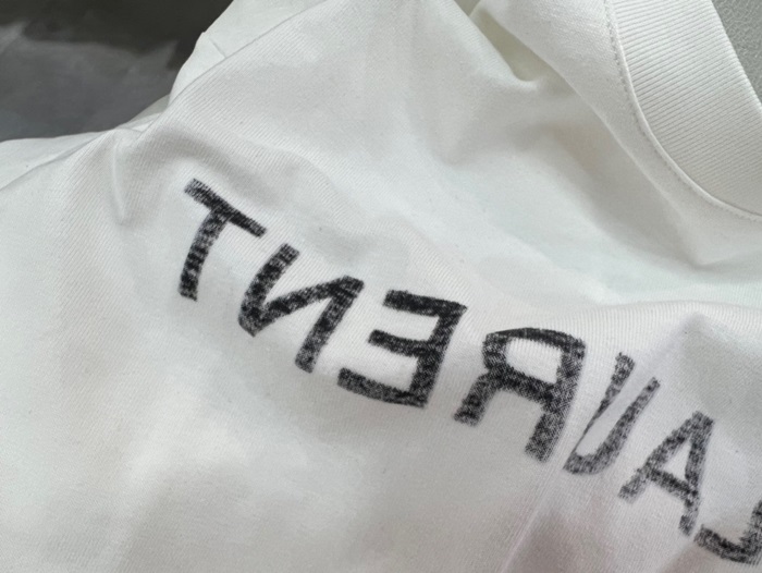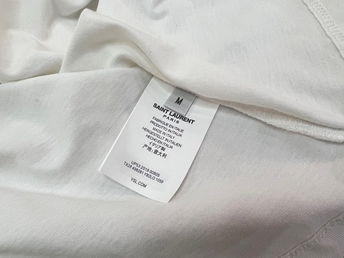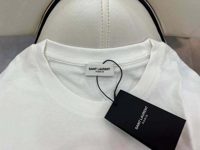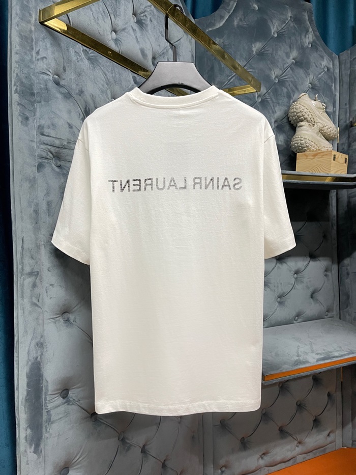 サンローランメンズホワイトクルーネック半袖Tシャツl344