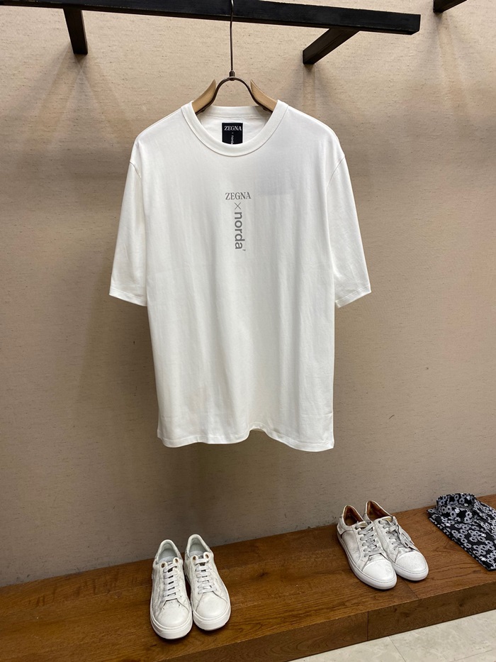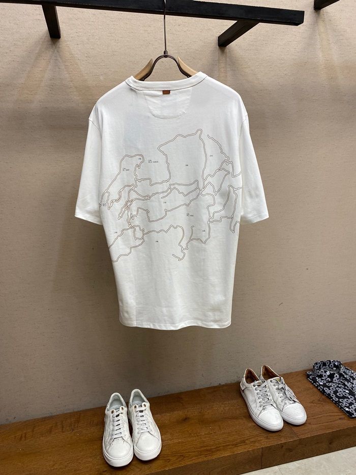 エルメネジルドゼニアメンズホワイトクルーネック半袖Tシャツe78