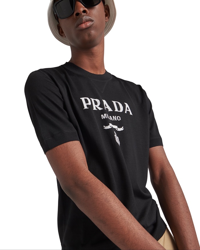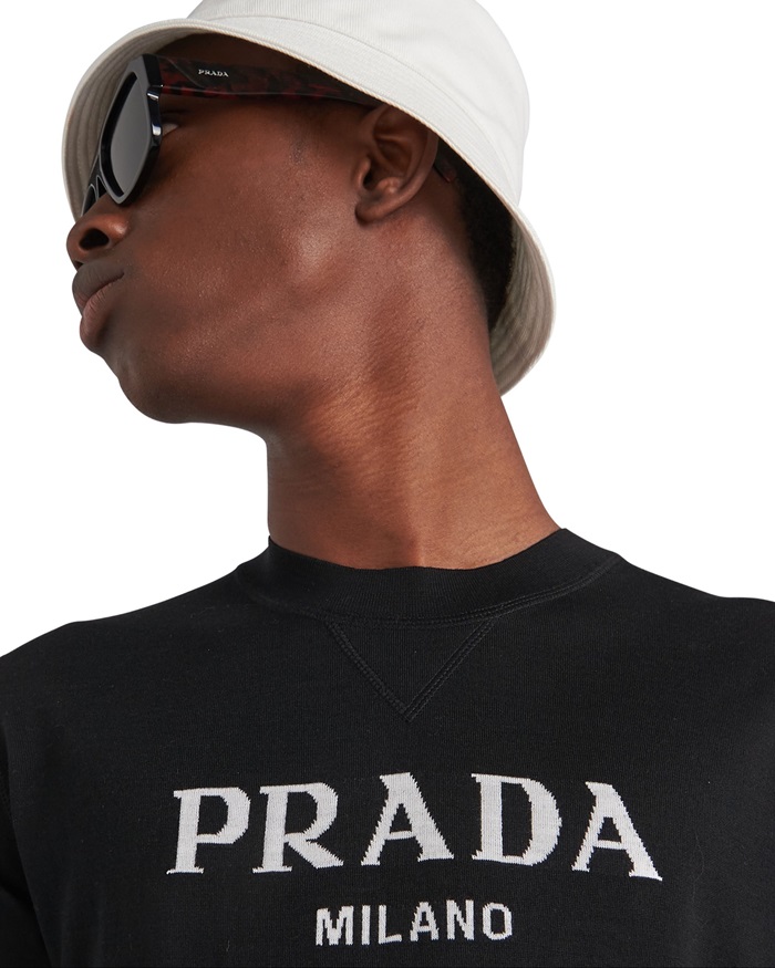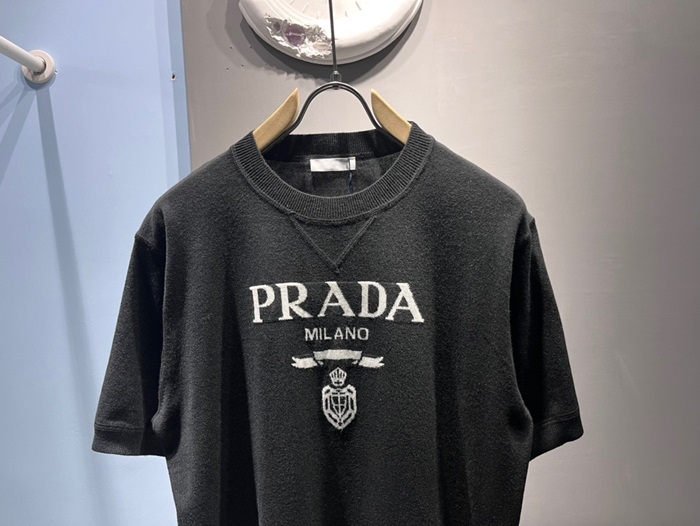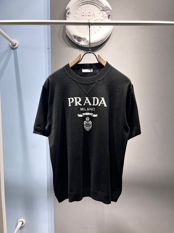 プラダメンズクルーネックブラック半袖Tシャツr363