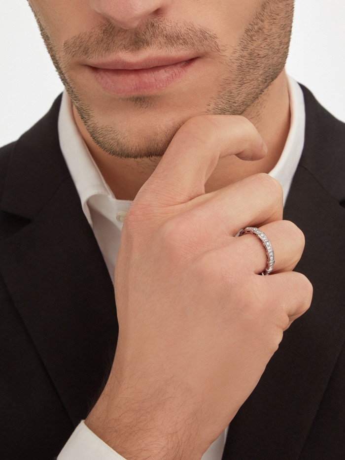 ブルガリユニセックスホワイトゴールドリングc01
