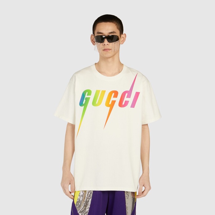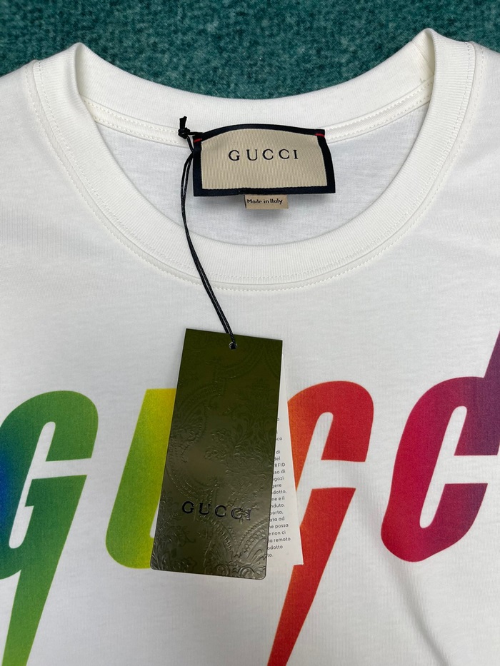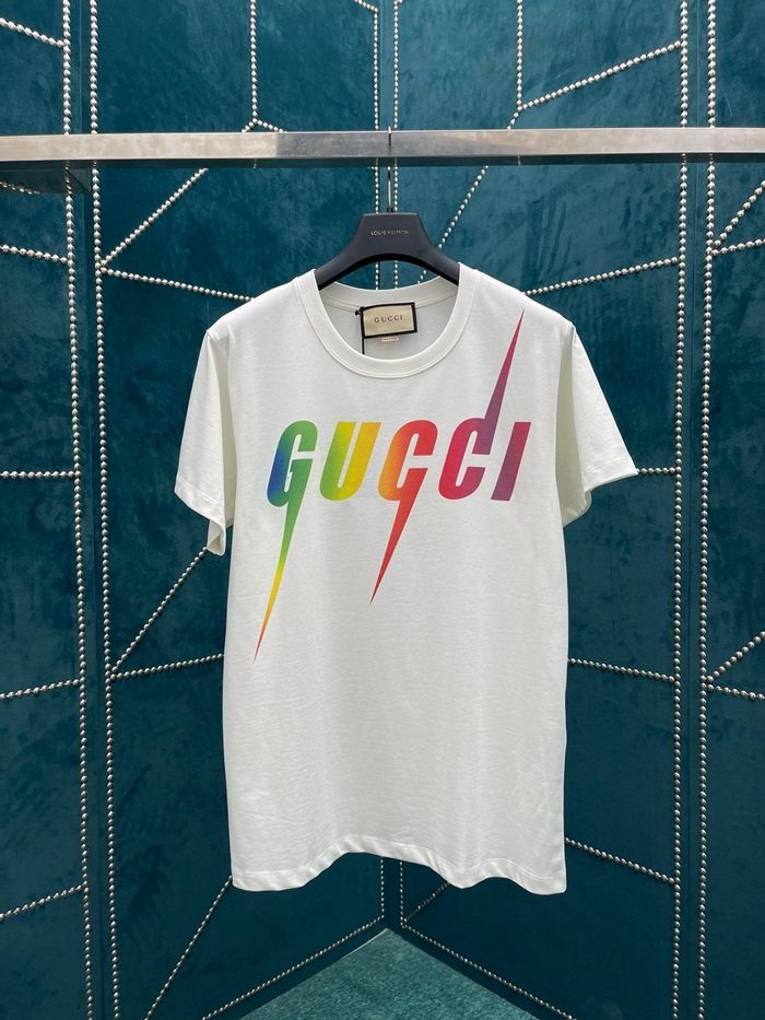グッチユニセックスホワイトクルーネック半袖Tシャツu362