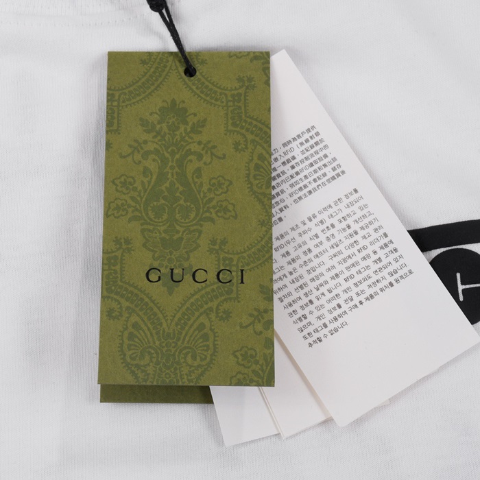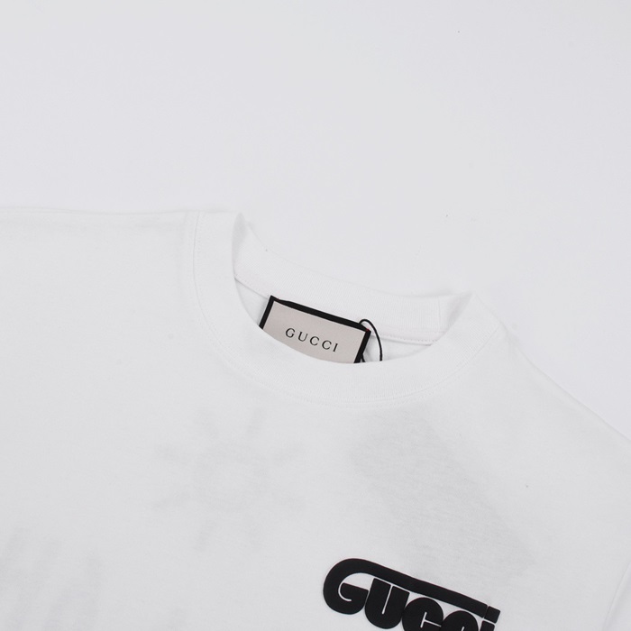 グッチユニセックスホワイトクルーネック半袖Tシャツu365