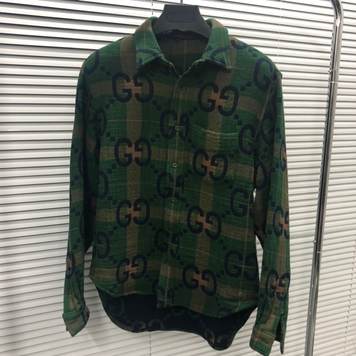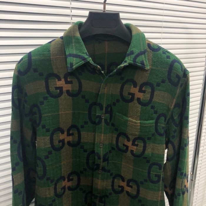 グッチメンズトレンディグリーンシャツu366