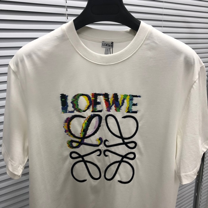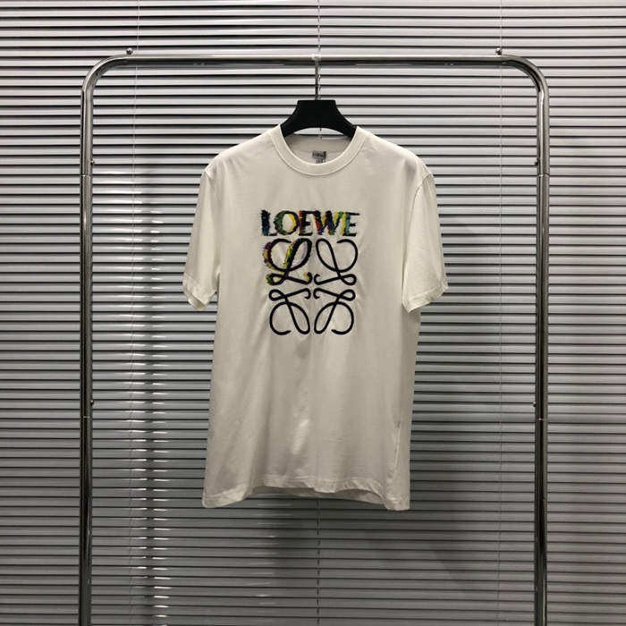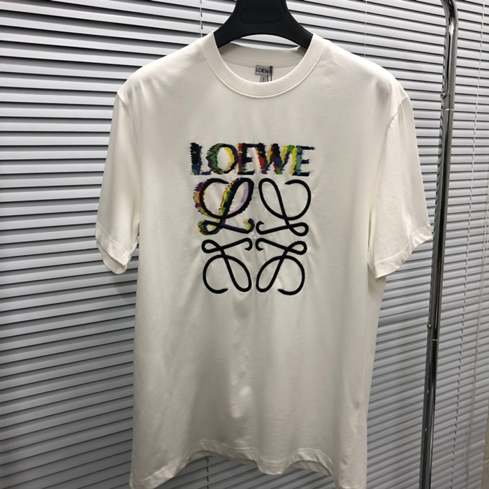 ロエベユニセックスイニシャルホワイト半袖Tシャツe711