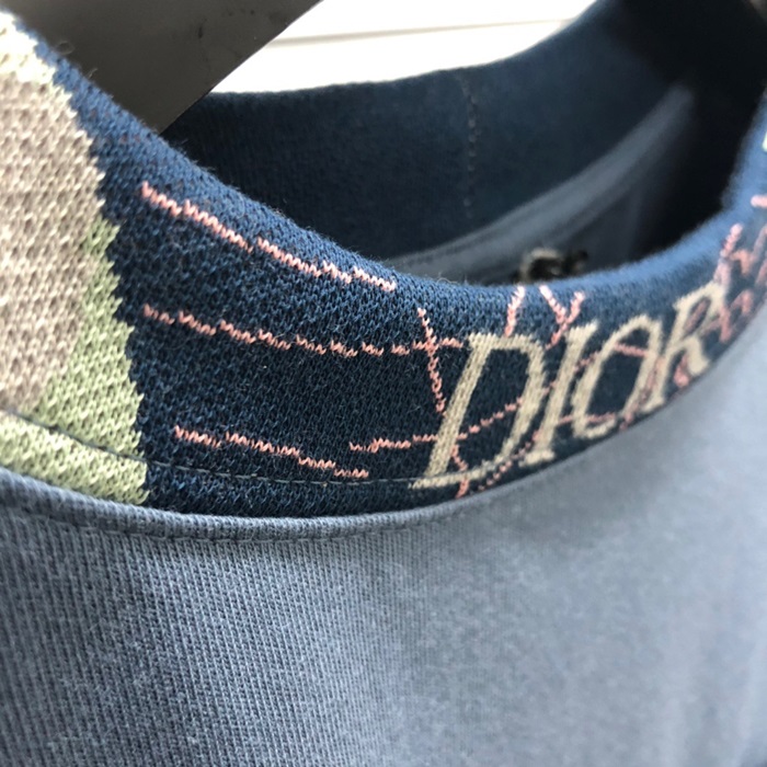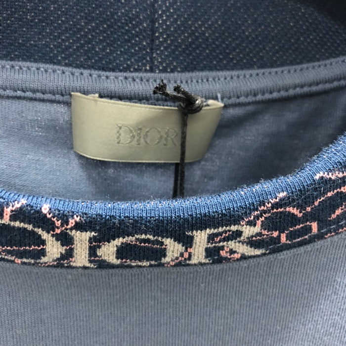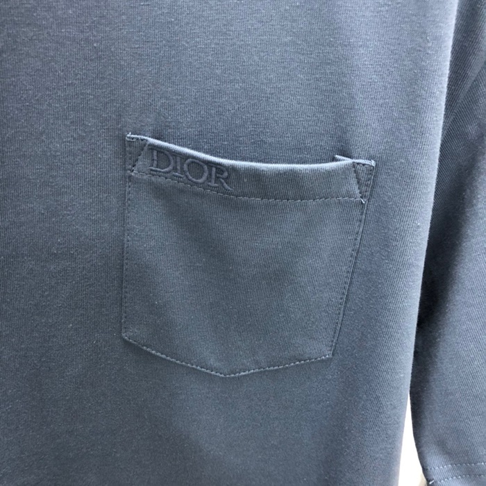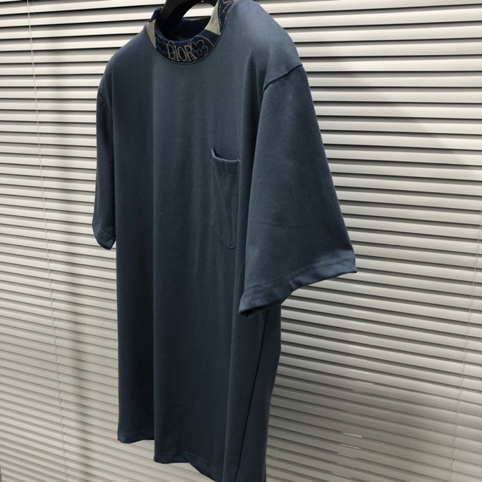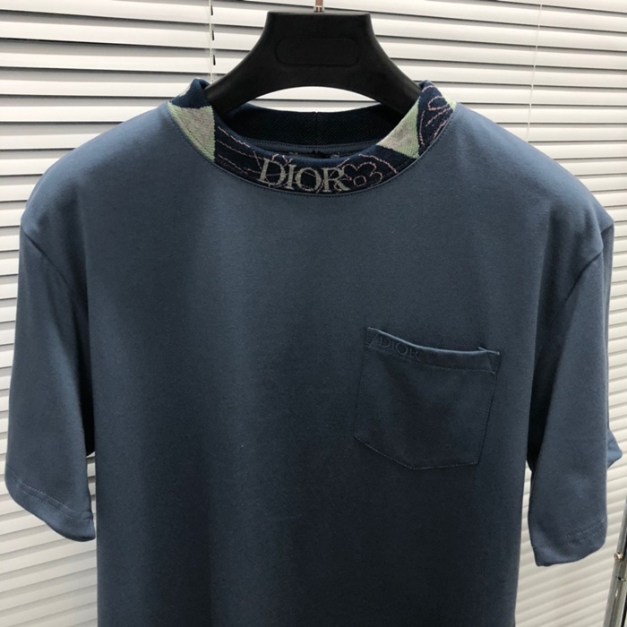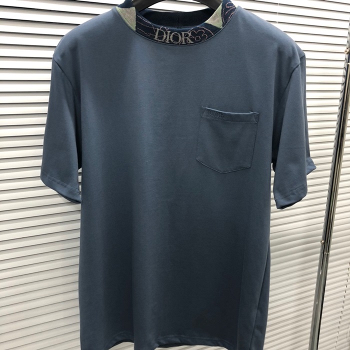 ディオールメンズブルークルーネック半袖Tシャツi356