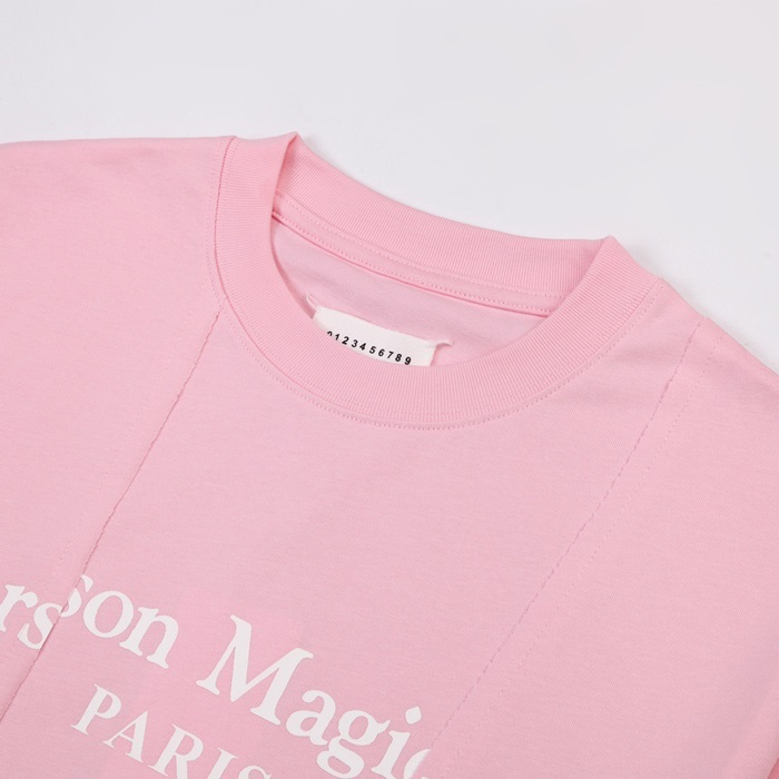 メゾンマルジェラユニセックスクルーネックピンク半袖Tシャツi127