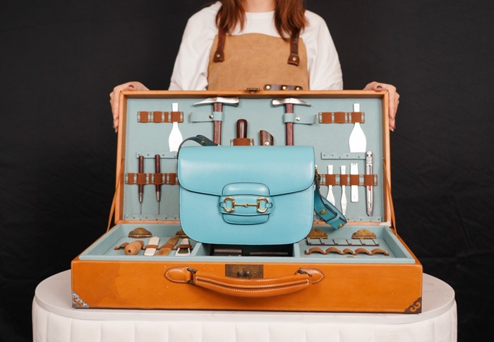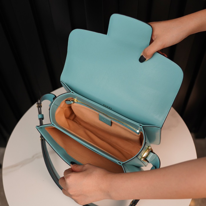 グッチレディースブルーホースビットショルダーバッグu466