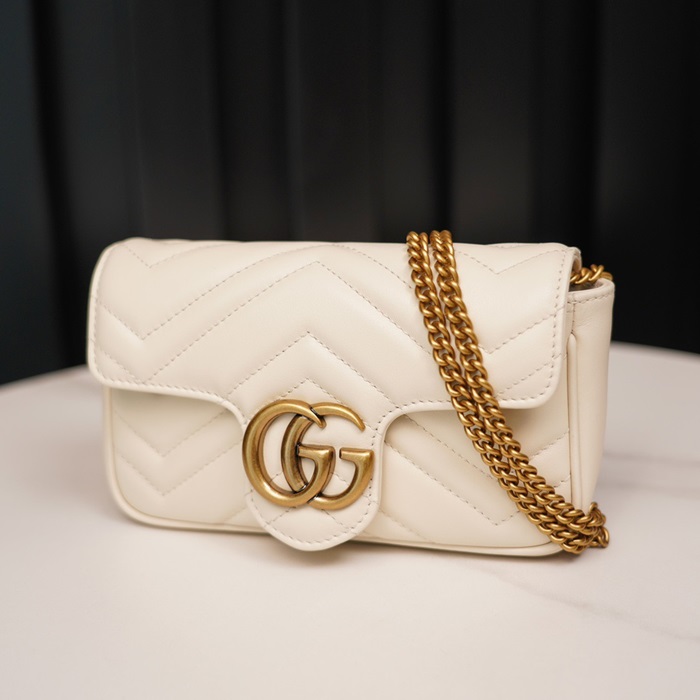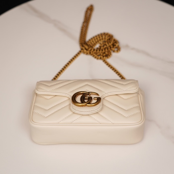 グッチレディースホワイトスーパーミニマーモントバッグu515