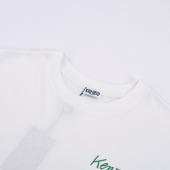 ケンゾーユニセックスホワイトクルーネック半袖Tシャツn214