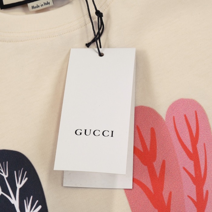 グッチユニセックスアイボリークルーネック半袖Tシャツu534